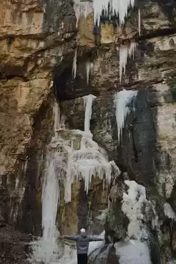 We chose an easier hiking route, walking up along the path covered with dead leaves 🍂. Along the way, there were stone walls covered with icicles and strange rocks of various shapes, as if we had walked into a world decorated with ice and snow☃️.