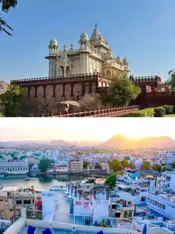 2. Jaswant Thada: Located at the foot of Mehrangarh Fort, it is a white marble memorial tower surrounded by beautiful gardens, with stunning views at sunset.