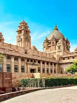 Perched above the Blue City of Jodhpur, Umaid Bhawan Palace is where history and luxury meet under golden domes. Still home to the royal family, this Taj-run heritage hotel welcomes guests into a world of grandeur, gardens, and timeless elegance.
