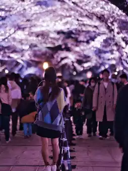 * The illuminated cherry blossoms at night are breathtakingly beautiful.