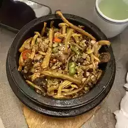 The side dish Stir fried beech mushroom and crunchy lotus root with honey brown sauce is also very good. The mushroom and lotus root is very crunchy and tasty and full of flavour.