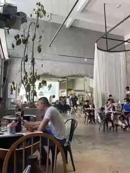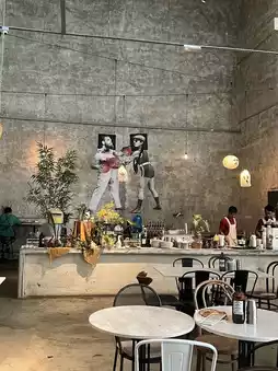 Upon entering, you're greeted by an airy, industrial-style space that feels both modern and welcoming. The high ceilings, exposed brick, and thoughtful lighting create an ambiance that encourages you to sit back, relax, and savor the moment. It's big enough to never feel crowded, yet maintains a cozy vibe that makes it ideal for everything from a solo work session to a leisurely brunch with friends. 👩👧👧