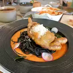 I had ordered Chili crab soft shell squid pasta and it was so tasty and yummy. other than pasta, we also ordered something like tomatoes soup 🍲 Borsch.