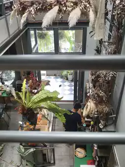 Tucked away like a hidden sanctuary, this botanical-inspired café feels more like an enchanting floral boutique than a typical eatery. Step inside, and you’ll be greeted by a lush, overgrown aesthetic, where cascading vines, blooming arrangements, and vintage wooden furnishings create a dreamy, secret-garden atmosphere. The space is not only visually stunning but also spacious and airy, making it a perfect spot to unwind.