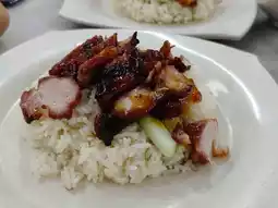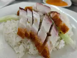 Some versions include roasted chicken in addition to the poached chicken. Roasted pork and char siew are also available too from this shop.