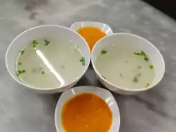 Hainan Chicken is poached, resulting in silky and tender meat. The rice is cooked in the chicken broth, giving it a rich flavor. The dish is known for its fragrant rice, flavorful chicken, and tangy chili sauce.