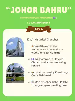 Johor Bahru Merdeka Garden is an ideal tourist destination that combines history and natural beauty. The garden is lush and serene, making it perfect for a leisurely stroll and relaxation. It not only boasts rich plant landscapes but is also one of Johor Bahru's significant historical sites, witnessing Malaysia's journey to independence. Whether you want to enjoy a peaceful afternoon or learn about local history, Merdeka Garden offers a delightful experience.