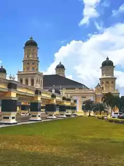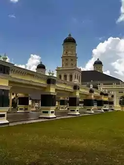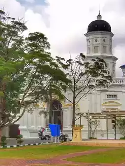 A stunning 1900-built mosque blending Victorian and Moorish styles, perched on a hill overlooking the Johor Strait. Its white walls, blue roof, and spacious prayer hall (for 2,000 worshippers) are iconic. The hilltop offers panoramic city views.