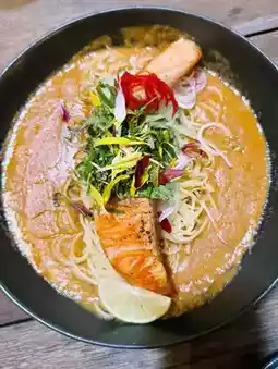 • Happy’s Laksa Ever was a fun twist… Laksa broth was thick and with spaghetti and salmon that actually worked wonders!