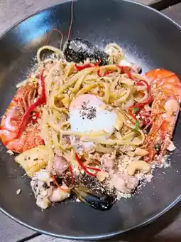 • Seaside Aromas Aglio Olio delivered classic seafood flavour with a nice garlicky and spicy kick.