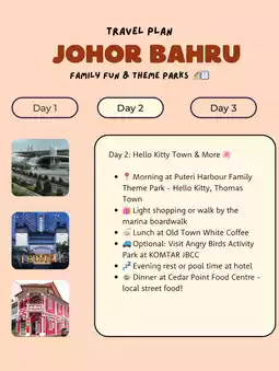 • 🚗 Travel: Taxi or Grab from JB Sentral (~30 min)