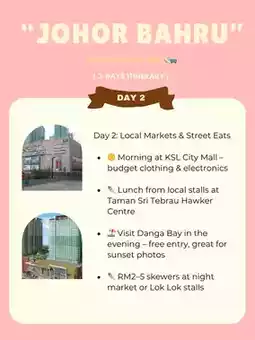 • 🏖️ Visit Danga Bay in the evening – free entry, great for sunset photos