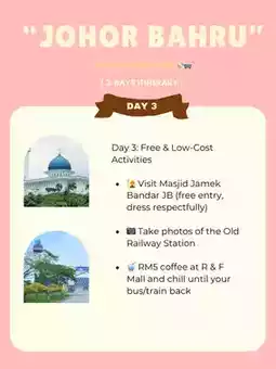 • 🕌 Visit Masjid Jamek Bandar JB (free entry, dress respectfully)