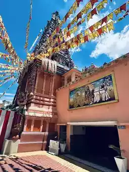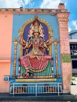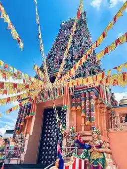 1. Must-see: The carved tower (gopuram) and painted statues at the temple entrance.