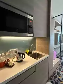 I originally booked a Studio apartment but was upgraded to a one-bedroom suite. The room design is simple yet elegant, with full facilities: