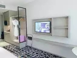 The room was spacious, modern, and very clean. I stayed in a studio with a comfortable king bed, a small kitchenette (microwave, fridge, kettle), and a clean bathroom with a rain shower. Wi-Fi was fast and stable. The air conditioning worked well, and the room was quiet at night.