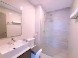The suite was clean, spacious, and well-equipped. It had a king-size bed, living area, kitchenette, and a large bathroom. Floor-to-ceiling windows offered a great city and partial sea view.