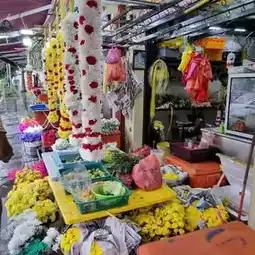 (Arulmigu Rajamariamman Devasthanam) as you can admire the colourful array of beautiful flowers and garlands. These are usually bought and presented to the deities in the temple.