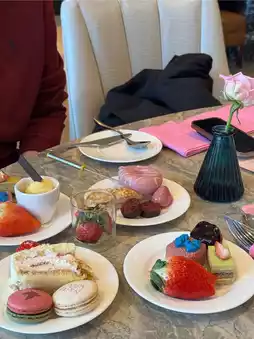 When you enter, you are greeted by all the desserts in the world made with strawberries. As soon as you sit down, you can choose a welcome drink and coffee or tea and use the buffet right away. Those who love desserts will be able to taste heaven.