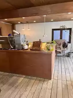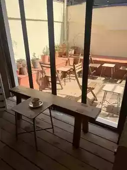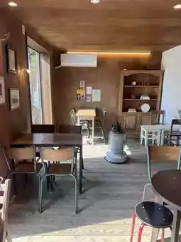 This restaurant is a lovely cafe with a warm, wood-like atmosphere.