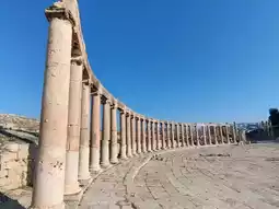 Hadrian's Arch is the most striking landmark at the entrance. This 13-meter-high arch was built to commemorate the visit of Roman Emperor Hadrian. Passing through the arch, I was greeted by the Oval Plaza, a unique oval-shaped square surrounded by a colonnade, which remains a symbol of Jerash's grandeur.