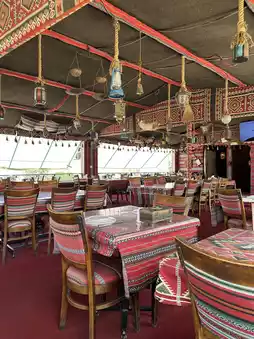 This is a local restaurant recommended by the hotel. It is located on the rooftop restaurant. The stairwell is beautifully decorated with carpets and lighting. It has a Middle Eastern flavor.