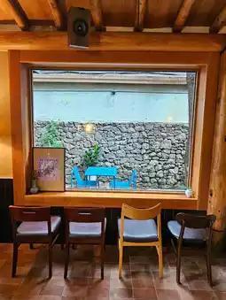 The stone wall was particularly striking, and for a moment, I felt like I was in a cafe in Jeju Island. 🍀