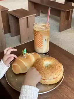 🤍The coffee isn't bitter, but it's good. I loved the unique and diverse bakery selection. While a bit pricey, the bagels were crispy, moist, and delicious, putting even famous bagel shops out of reach. The salt bread was a bit soggy, which was a bit disappointing.