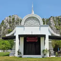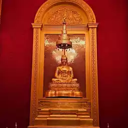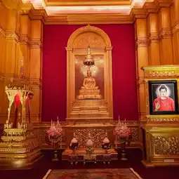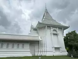 The highlight here is the white Homnasikar building. Inside this building, it is divided into 3 zones: Zone 1 (no photography) is a replica of the image of the Lord Buddha before he became a Buddha. Zone 2 (photos allowed) has a 30-inch Buddha statue covered in pure gold. There is an embroidered image resembling the Buddha, Phra Borom Lokanat, which used more than 651,000 stitches and 49 colors of thread. Zone 3 (no photography allowed) is the present era, displayed in the form of a modern p