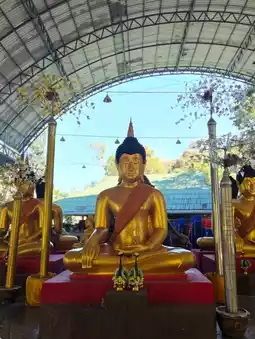 A temple with a highlight is the 500-spire golden pagoda. When you enter, you will see it first. Drive further in and you will see the reclining Buddha, the elephant pagoda, a replica cave, and many Buddha statues. Those who are into the spiritual path should not miss this. The place is very spacious and there are many things to see. It is considered a famous temple where tourists often come to worship and admire the beauty of this temple continuously.