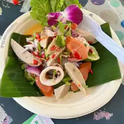 Guangzhou Floating Market or Guangzhou Waterfall Forest Floating Market, Nong Ya Plong District, Phetchaburi Province is located on Guangzhou Waterfall, a small waterfall created by the royal initiative and may be the only market in the world with this kind of feature. Villagers happily bring their products to sell. Most of the products are vegetables, fruits, and freshly cooked food. The entrance to the market offers a view of the shady nature, perfect for a relaxing break. 😊Open on Saturdays, Sundays, and public holidays from 9:00 a.m. to 4:00 p.m. #Phetchaburi attractions #Thailand