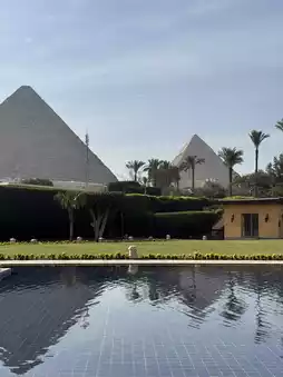 The biggest highlight of this hotel is the ability to view the pyramids directly from your room. As soon as you open the window, the majestic pyramids unfold right before your eyes, offering a truly unique experience. The classic architecture, landscaping, and sophisticated interiors create an elegant yet grand ambiance.
