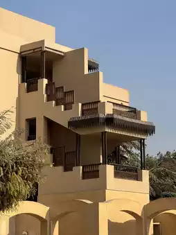 The butter-colored low buildings blend seamlessly with the garden scenery. Traditional and Arabic-inspired details enhance the special atmosphere along the walking paths. 🏜️🏡🌸