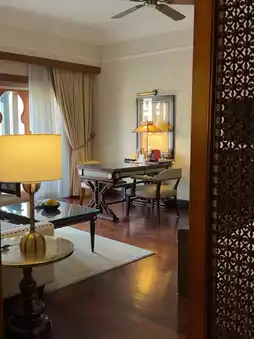 The spacious Junior Suite harmoniously blends classic decor with modern amenities. From the private balcony, you can enjoy a view of the beautifully maintained garden, offering a sense of relaxation even within the room. As the morning sunlight streams in, the scenery outside the window unfolds like a masterpiece. ๐
