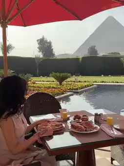 The hotel's signature restaurant features an outdoor terrace where the Pyramids are right in front of you. A breakfast of fresh fruits, freshly baked bread, and aromatic coffee is a special experience in itself. While dining, you can admire the scenery where ancient and modern coexist. ๐บ๐ฅโ