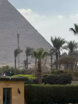 The hotel's expansive and well-maintained garden is a space where you can feel the unique elegance of Mena House. As you walk along the paths lined with palm trees and flowers, the distant view of the pyramids adds another layer of wonder. Here, you'll encounter a tranquil atmosphere where time seems to flow more slowly. 🌺🌴🚶♀️