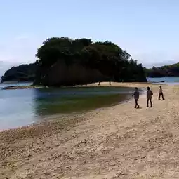 The Angel Road between Bentenjima and Nakayoshima, which appears only at low tide, can be enjoyed in two ways:
