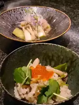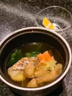 •Steamed red sea bream and matsutake mushroom in earthenware pot with sudachi citrus