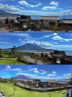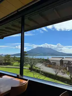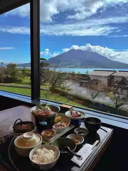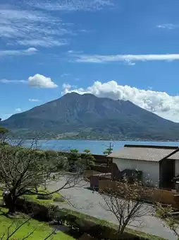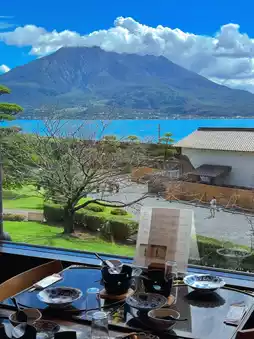 The best viewpoint of Sakurajima Volcano▶️Sakura Garden, mountains and seas, green trees, and the city train shuttles through it, the scenery is beautiful. It's best to come here early in the morning, there are fewer people and it's good to stroll around, and then have lunch at Sakura Garden.