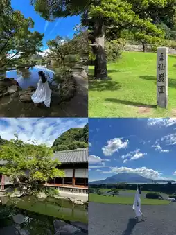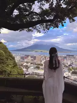 1️⃣Shiroyama Park: Sakurajima Volcano is wearing a white hat, and you can't see the 🌋 panorama, but you can wait for the sunset afterglow, and the whole city is covered with a 🌆 golden veil. Shiroyama Park (you can see the whole volcano and city view from a distance, suitable for after 5 pm, you can see the beautiful sunset and starry night view)