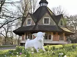 There is a statue of his beloved dog on the front side across the road,