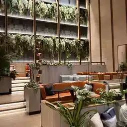 The public areas are designed by New York-based CRÈME, and have a warm atmosphere with greenery and natural wood.