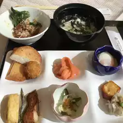 Breakfast: Japanese and Western buffet. So many choices. Looking at Sakurajima volcano.