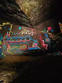 The lighting is self-contained: a switch at the entrance illuminates the interior. Please be mindful of your feet and the sound of water droplets.