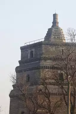 Fan Tower and Iron Tower coexist, becoming the only two Song Dynasty relics on the surface of Kaifeng. Led by a friend, I saw Fan Tower surrounded by courtyard walls in the wilderness as soon as I got off the car. It was particularly eye-catching in the afterglow of the setting sun, with withered vines and old trees, overgrown with weeds, and only a few passersby.