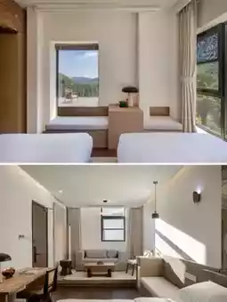 5 old houses, 21 rooms. There are also supporting facilities such as the book room, coffee and gallery, village market, and autumn meal. The exterior of the homestay is an old Zhejiang West rammed earth house, which retains the basic charm of the ancient village. The interior incorporates a modern style, uses various star products and intelligent facilities, and creates a house that can breathe.