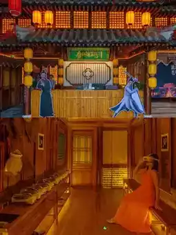 • Climb to the top for a panoramic view, wear Hanfu to pose with root carving Buddha statues, sunlight streams through the pagoda windows creating natural light and shadow.