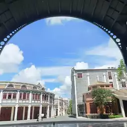 Chikan was built along the Tanjiang River, with a village on the south bank and a city on the north bank. It is full of arcades, far smaller than the huge Western-style buildings in Kaiping Old Street. There are Didong and Dixi Roads along the river, and Zhonghua Road running parallel to them. There is also a small road called "Ermalu" sandwiched between the two roads. These are the three horizontal roads parallel to the river, and there are many longitudinal roads intersecting with them to form the road network in the urban area. Chikan Town has an ancient flavor that combines Chinese and Western styles. Therefore, it is known as the "Fifth Famous Ancient Town in China".