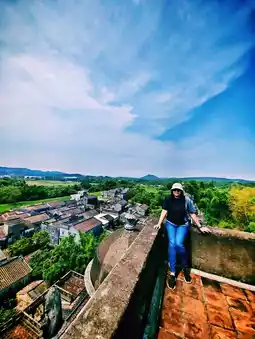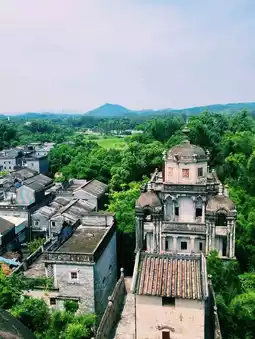 From the top of Ruishi Diaolou—Kaiping’s tallest and most ornate watchtower—you’re rewarded with a breathtaking 360° view of Jinjiangli Village. The landscape below is a stunning mix of tiled rooftops, grand diaolou towers, lush paddy fields, and bamboo groves, with rolling hills in the distance. Each upper floor offers unique perspectives, especially the 9th-floor watchtower. It’s a peaceful, panoramic escape perfect for photography, heritage lovers, and those who want to see rural Guangdong from above.