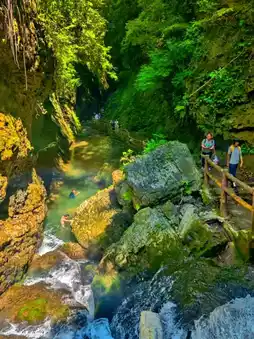 The glass bridge spanning the canyon will make your legs wobble—look down to see the Nanjiang River winding like a green ribbon below. Prefer hardcore thrills? Try the via ferrata, scaling the cliffs with professional guidance. The view from the top is pure triumph!